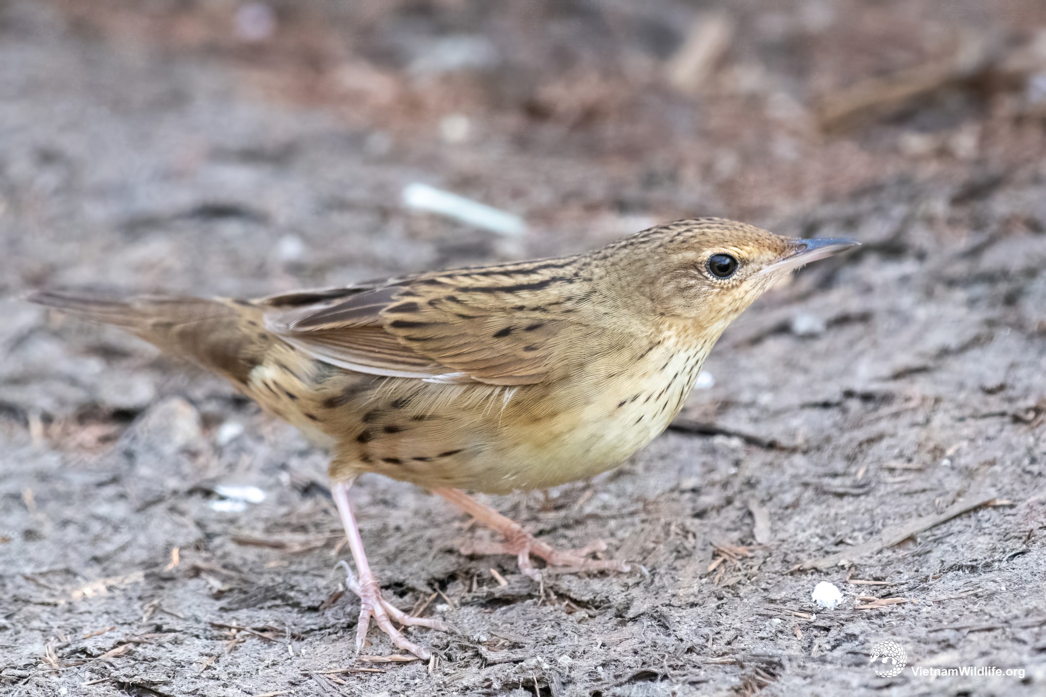 The Lanceolated Warbler is a small species in the warbler group (about 12 cm). It has whitish supercilium and prominent rufous plumage with a heavily streaked appearance, including distinct streaking on the rump, lower throat, breast, flanks, and undertail-coverts. The male and female are similar.