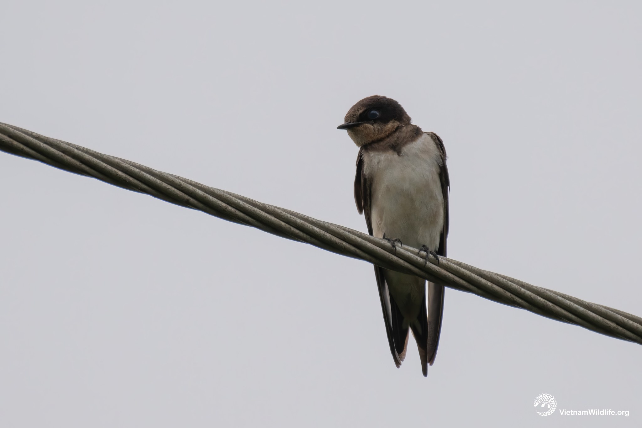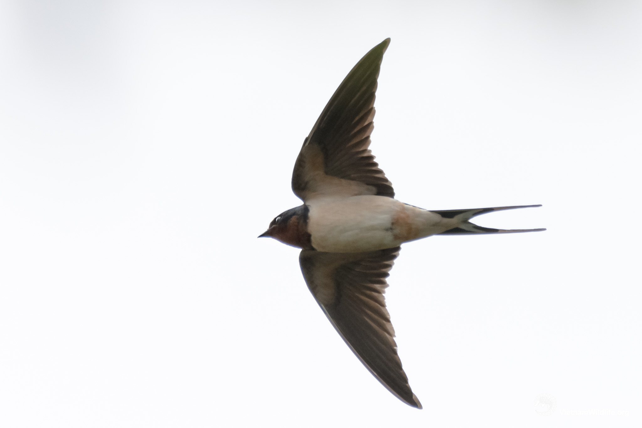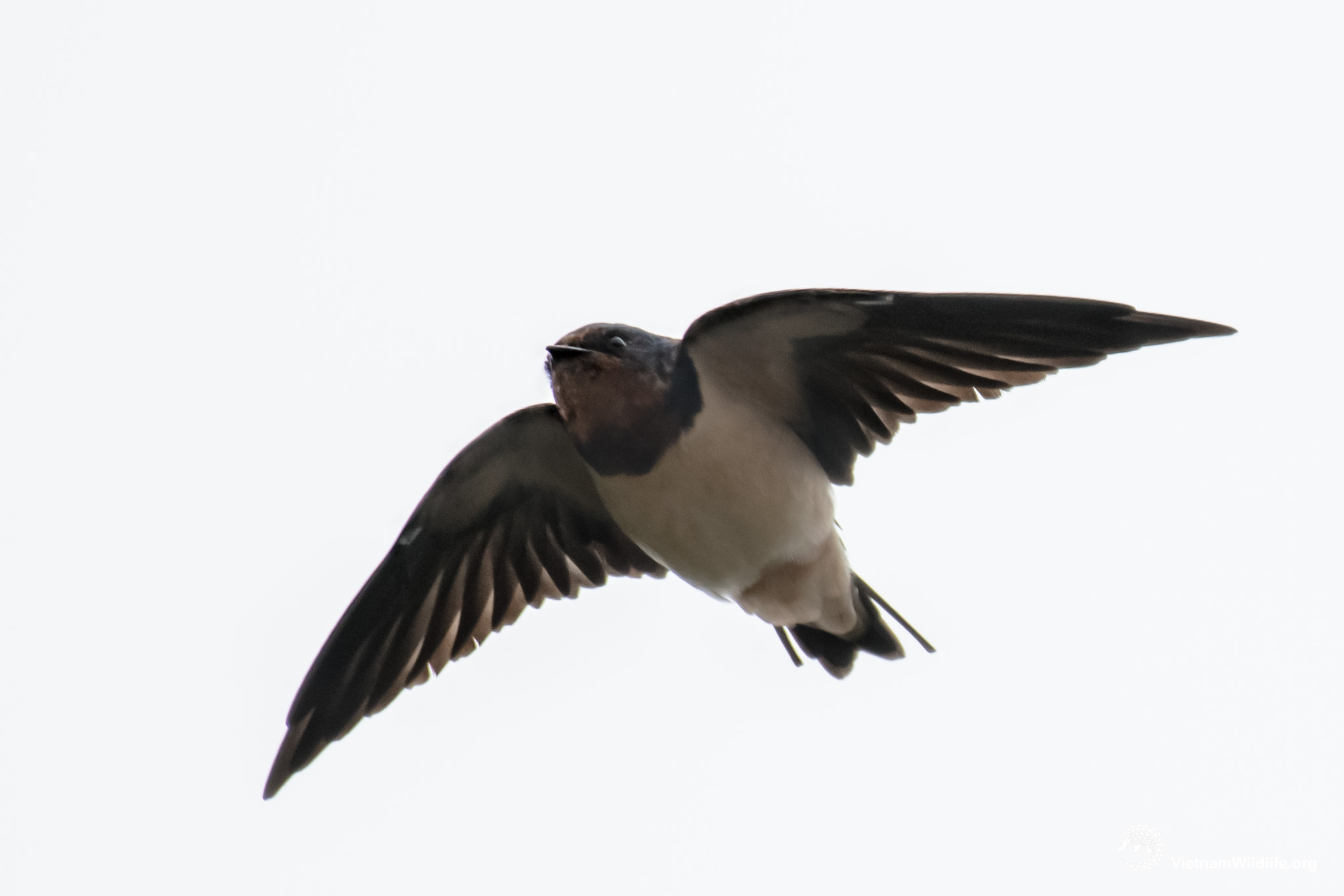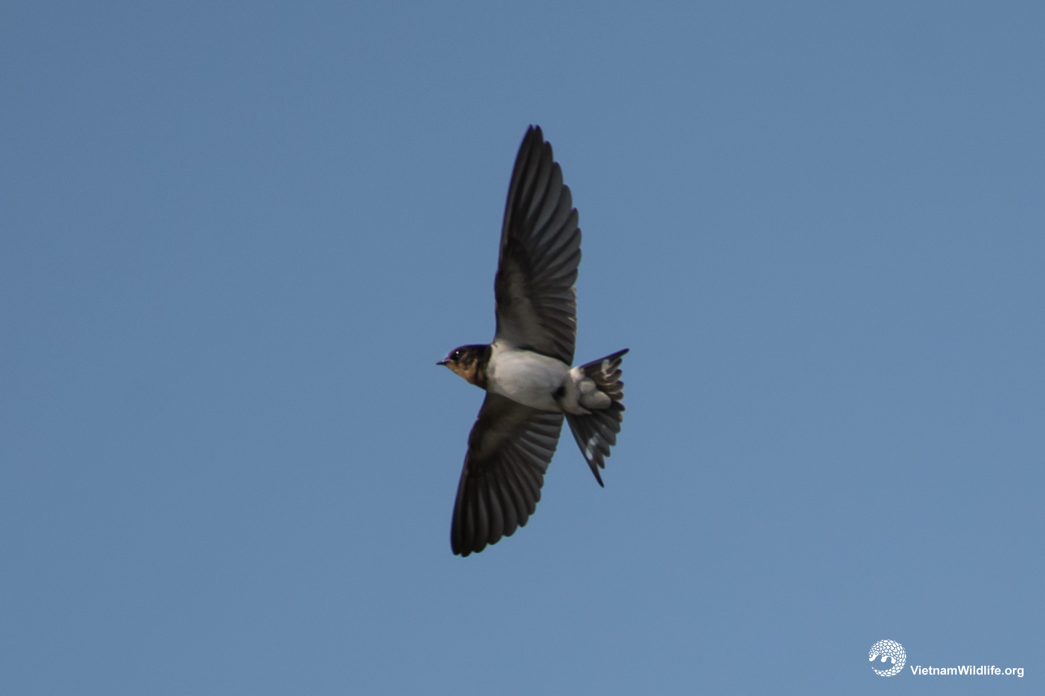 Eurasian barn swallow is large sized species (about 18 cm). The adult male barn swallow has steel blue upper-part and a rufous forehead, chin and throat, which are separated from the off-white underparts by a broad dark blue breast band. The outer tail feathers are elongated, giving the distinctive deeply forked “swallow tail”. The female is similar in appearance to the male, but the tail is shorter, the blue of the upper-part and breast band is less glossy.