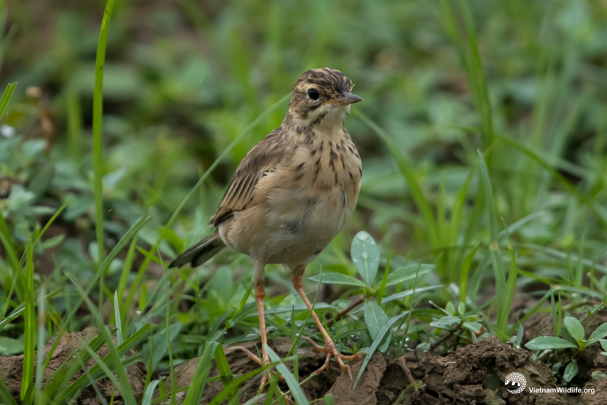 Richard’s pipit is a large bird under the pipit genus with length of approximately 18cm. It is a slender bird which often stands very upright. It has long yellow-brown legs, a long tail with white outer-feathers, a long dark bill with a yellowish base and strongly marked face by pale supercilium and dark eyestripe. It also has dark streaks on the upperparts and breast while the belly and flanks are plain.