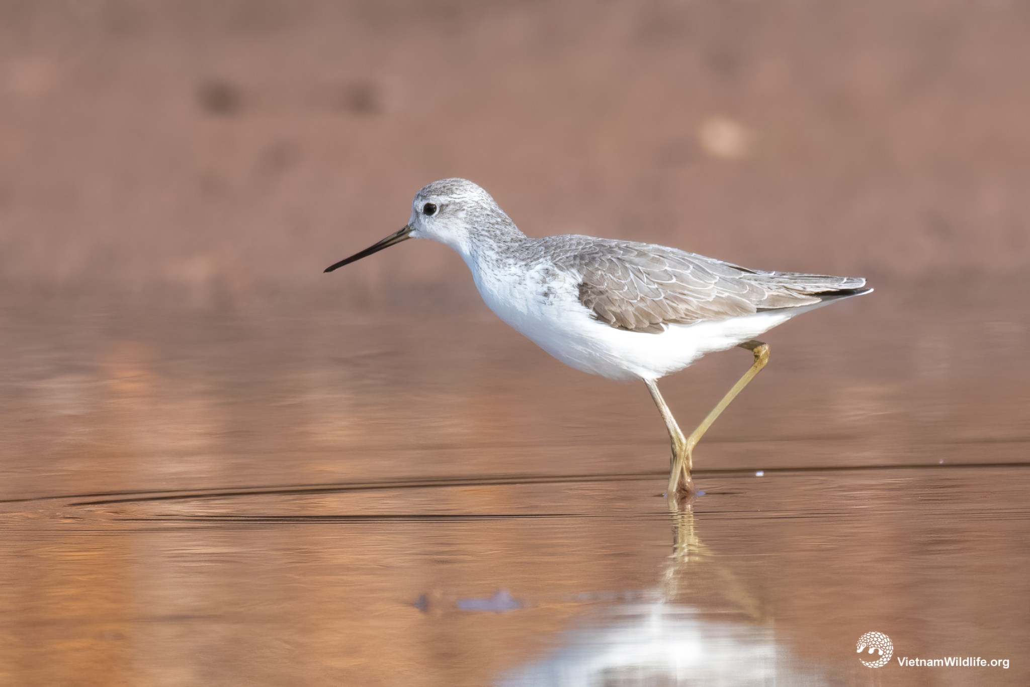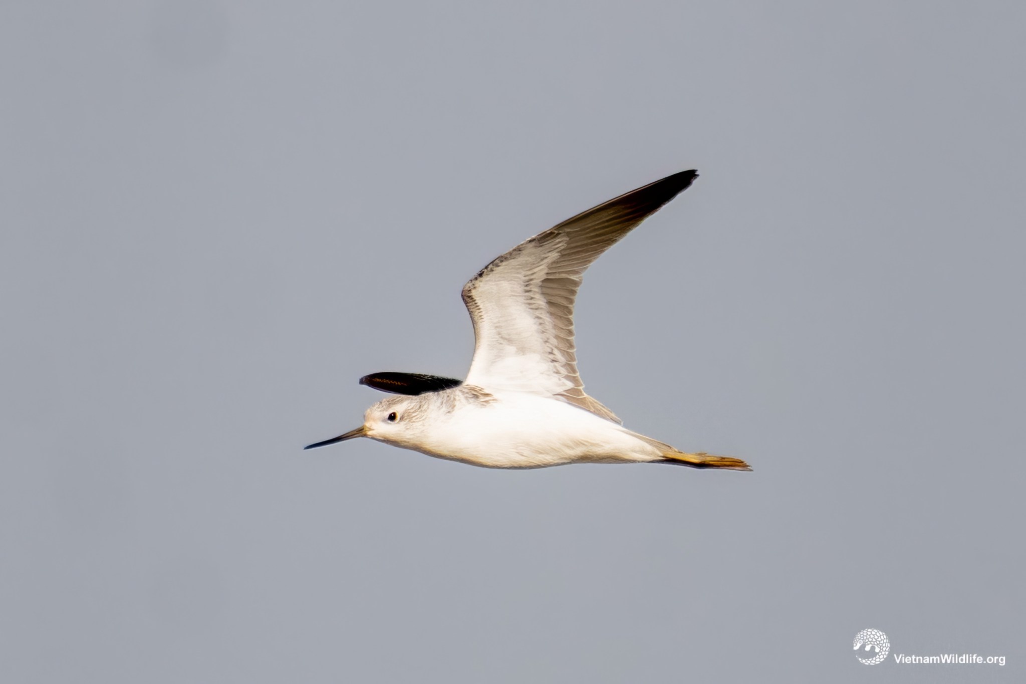 The Marsh Sandpiper is a needle-like bill, very long, yellowish green legs, and small body with soft grey-brown upper body, and white from breast to rump. The plumage of the bird will be browner in breeding season.