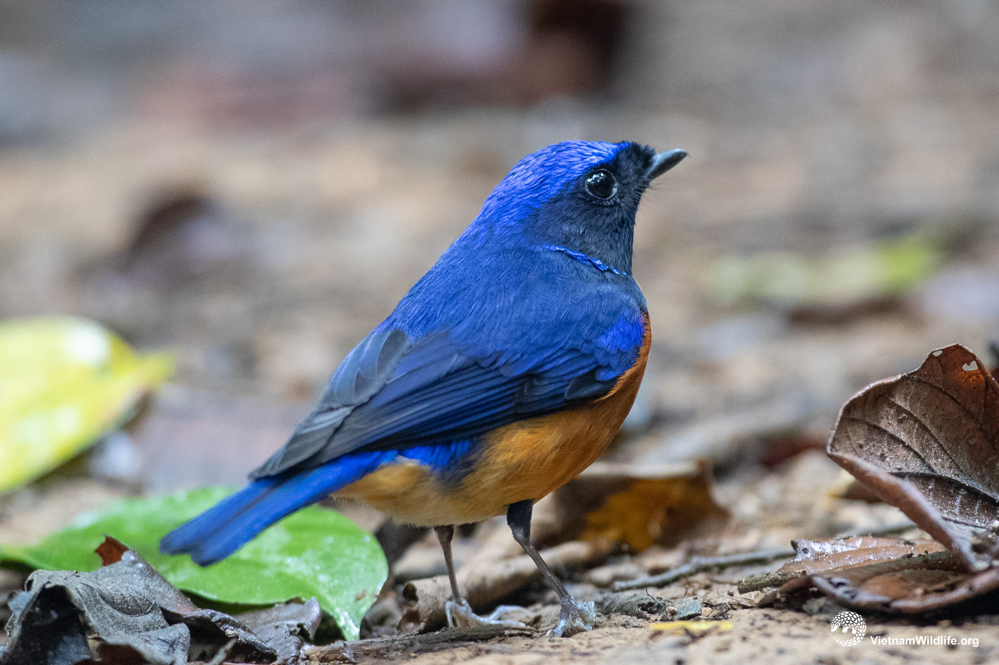 Fujian Niltava is large sized flycatcher with length of approximately 18 cm. The sexes are very different. The female has strongly rufescent wings and tail , blue neckpatch