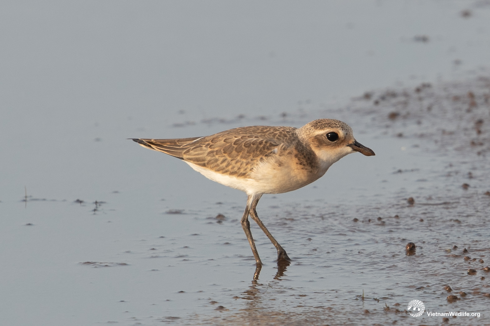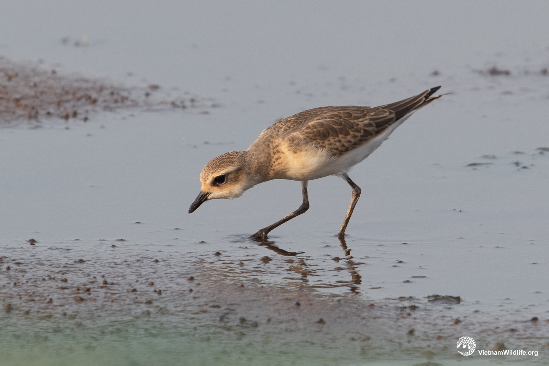 Lesser sand plover is small size species under plover group (about 20 cm). In non-breeding season the male and female are similar with sandy greyish-brown upperparts, whitish forehead and supercilium, and greenish-grey legs and feet. In breeding season, the male has distinctive, with black forehead and deep orange-rufous sides of neck and broad breast-band.
