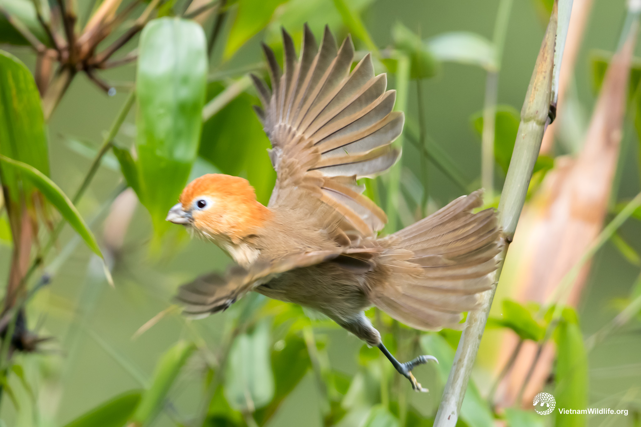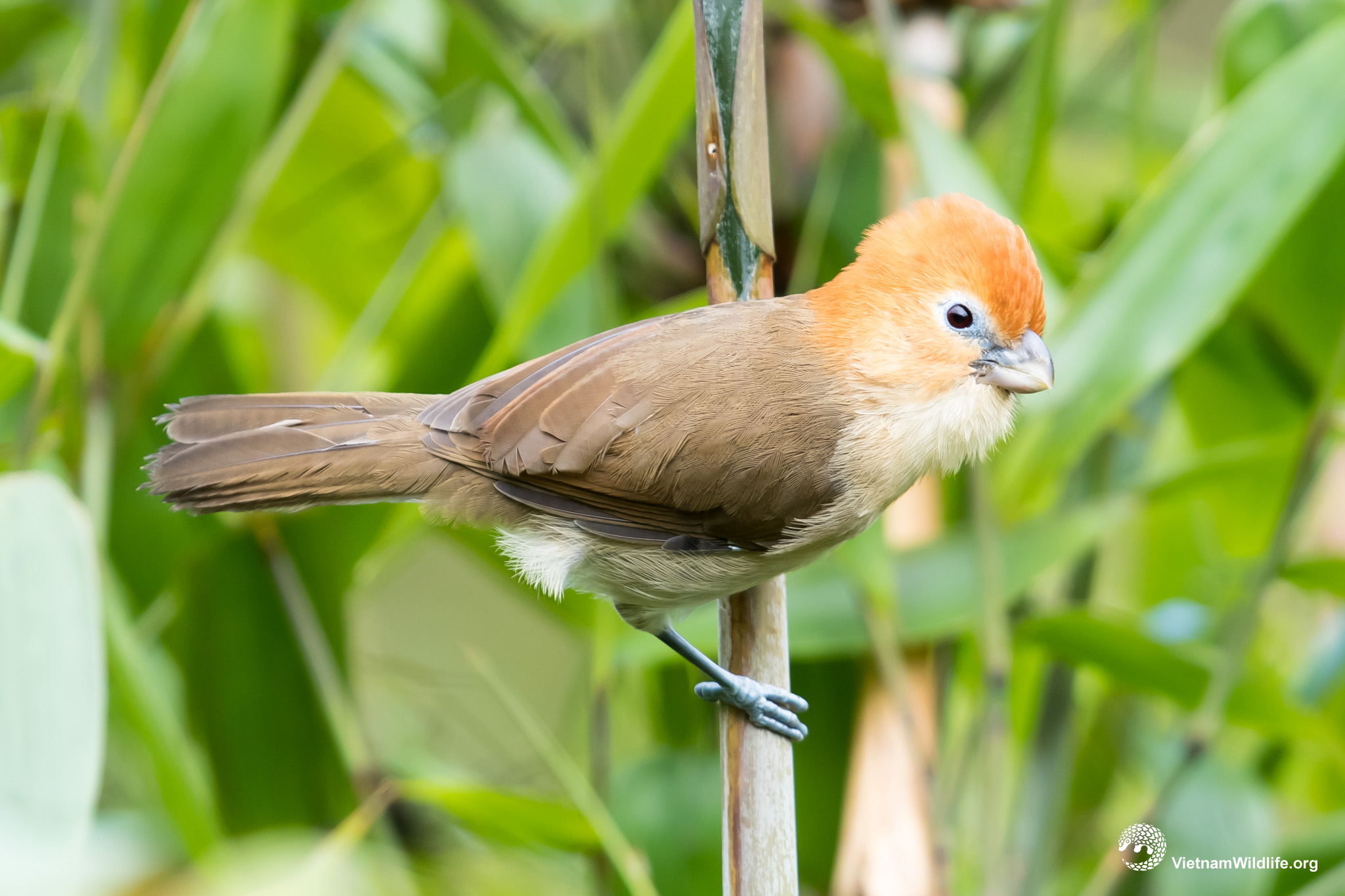 Rufous headed parrotbill is a large sized species in parrotbill group (about 20 cm). It has a distinctive rufous forehead and paler to crown, relatively large bill, brown upperparts and whitish underparts. Male and female are similar