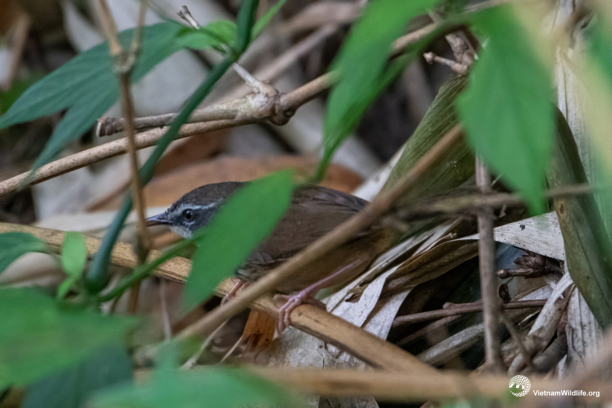 Hill prinia is medium sized species in prinia group (about 17 cm). It has mostly bright brown plumage with distinctive white supercilium, white throat and upper-breast with dark streak (in breeding season), very long tail (especially late winter). Male and female are similar.