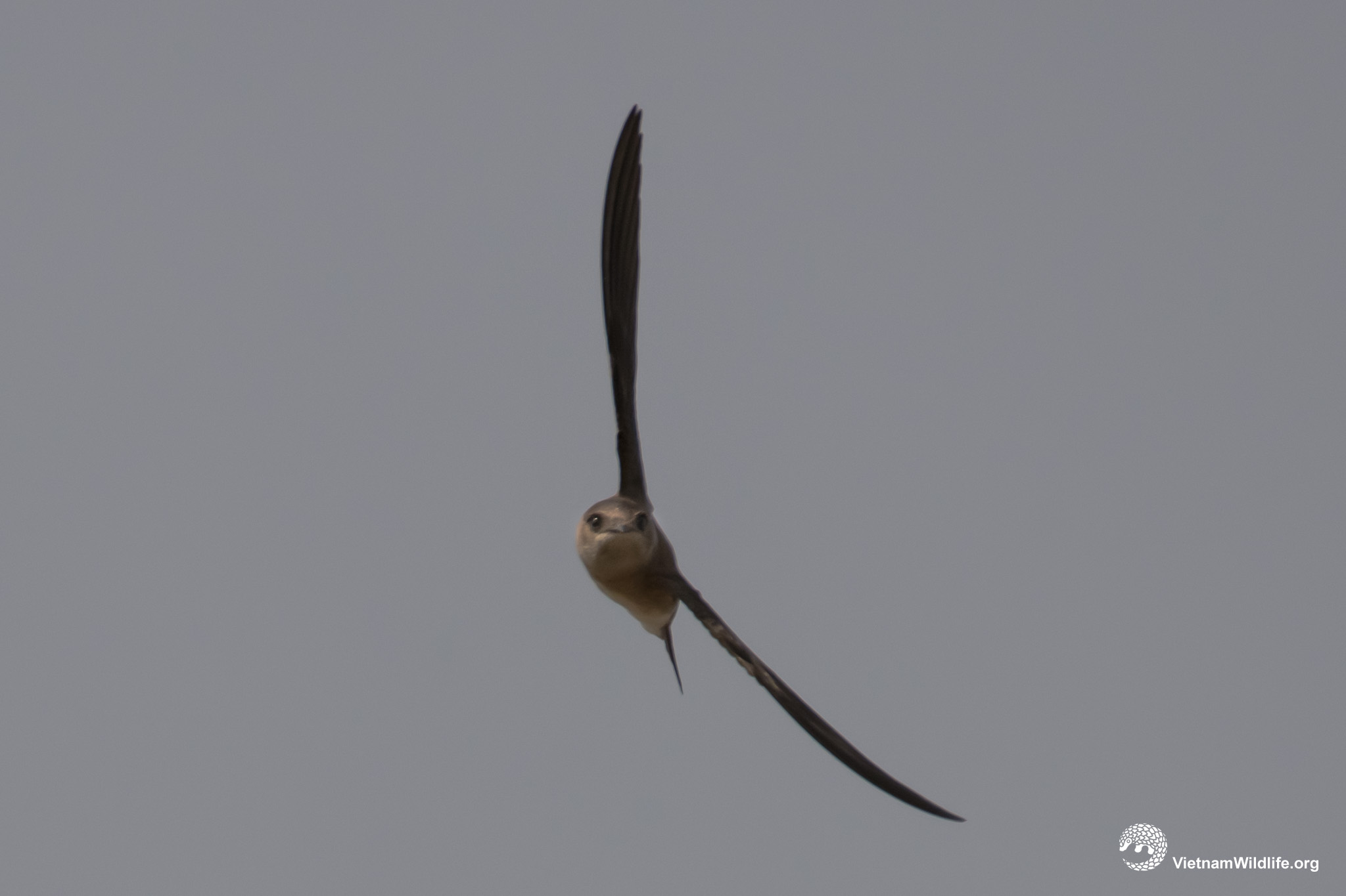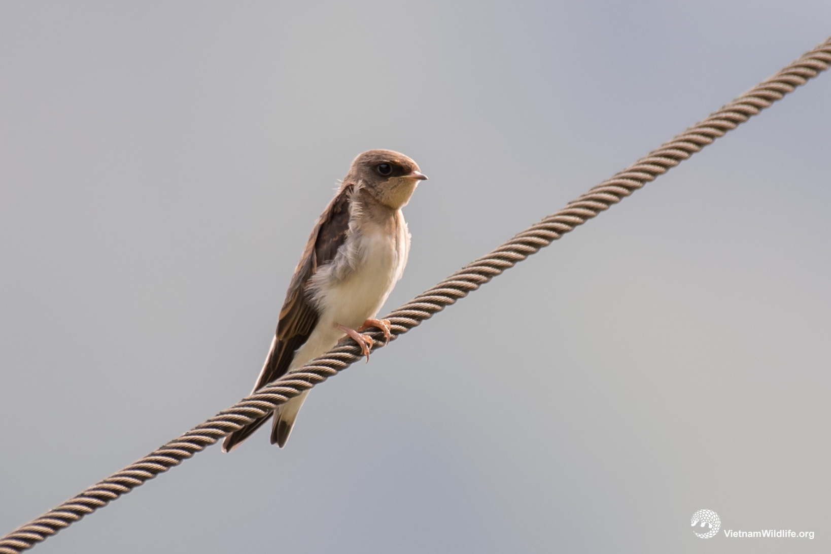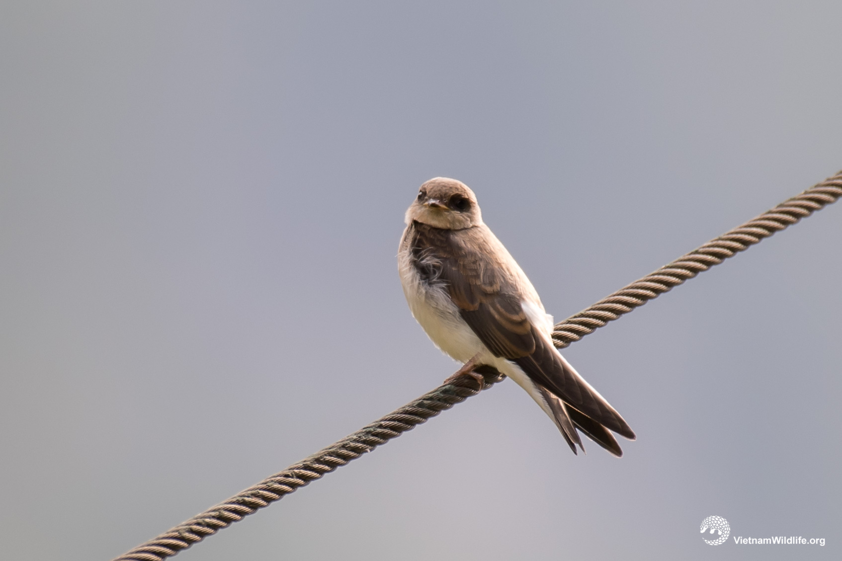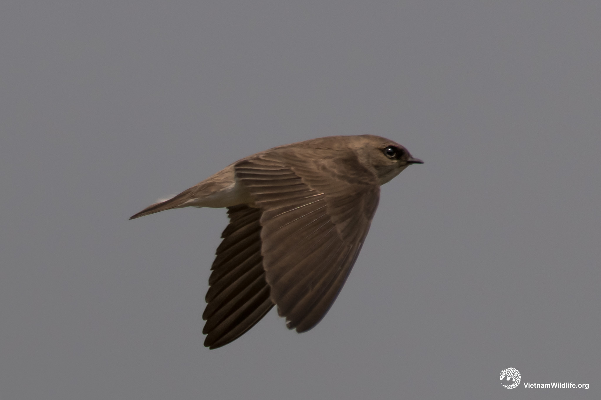 Asian plain martin is the smallest sized species in the martin group (about 10 cm). It has brown upperparts, greyish-brown throat and breast without breast band and whitish underparts. The Asian plain martin has least shallow tail-folk among the martin group.