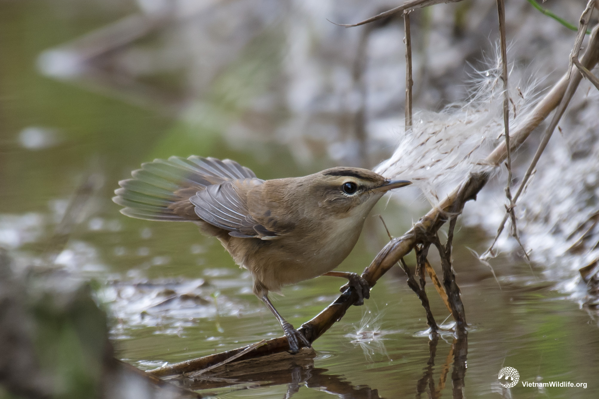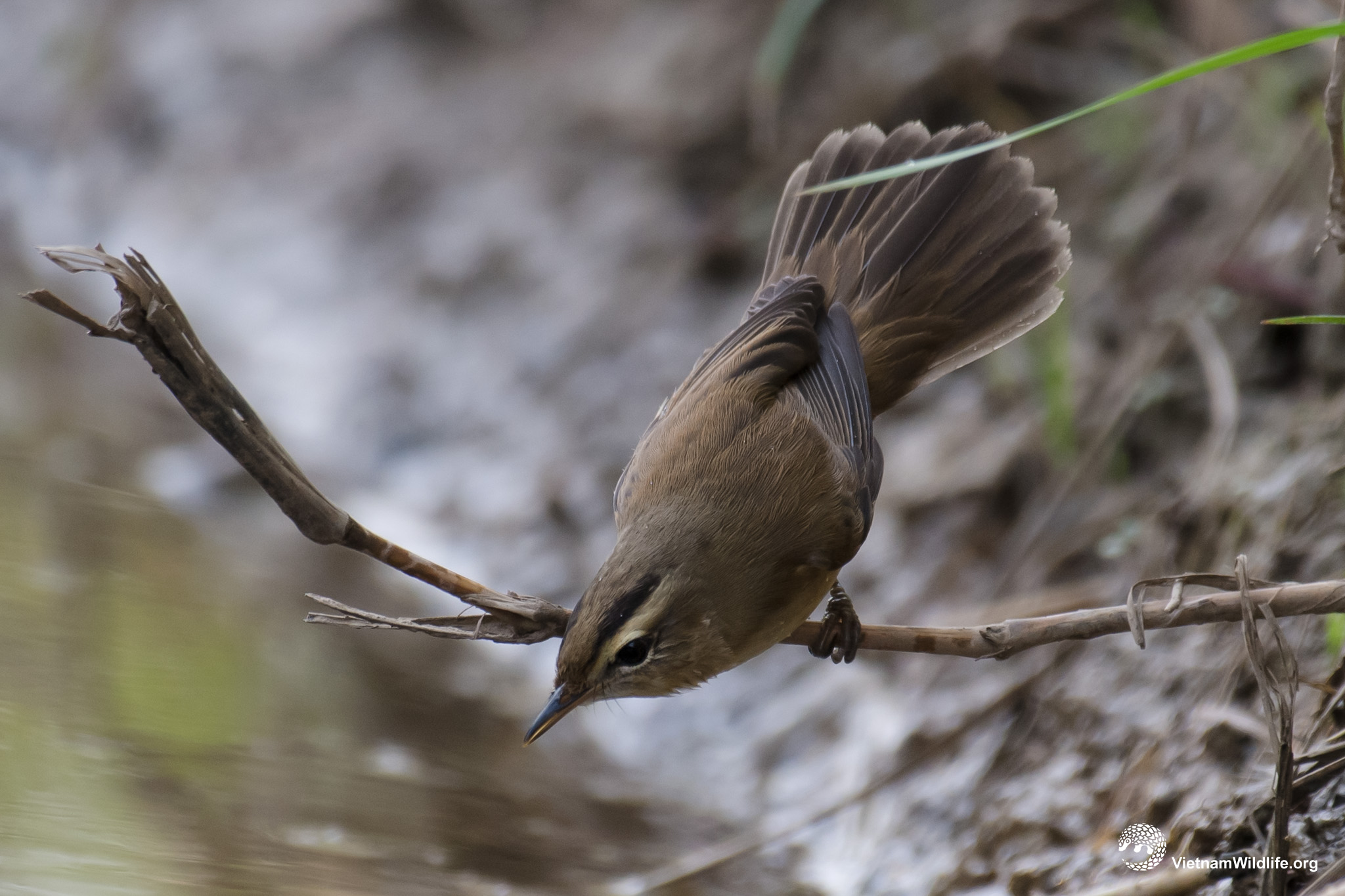 Black-browed reed warbler is relatively smaller than other species in the reed warbler (about 14 cm). It has distinctive long broad