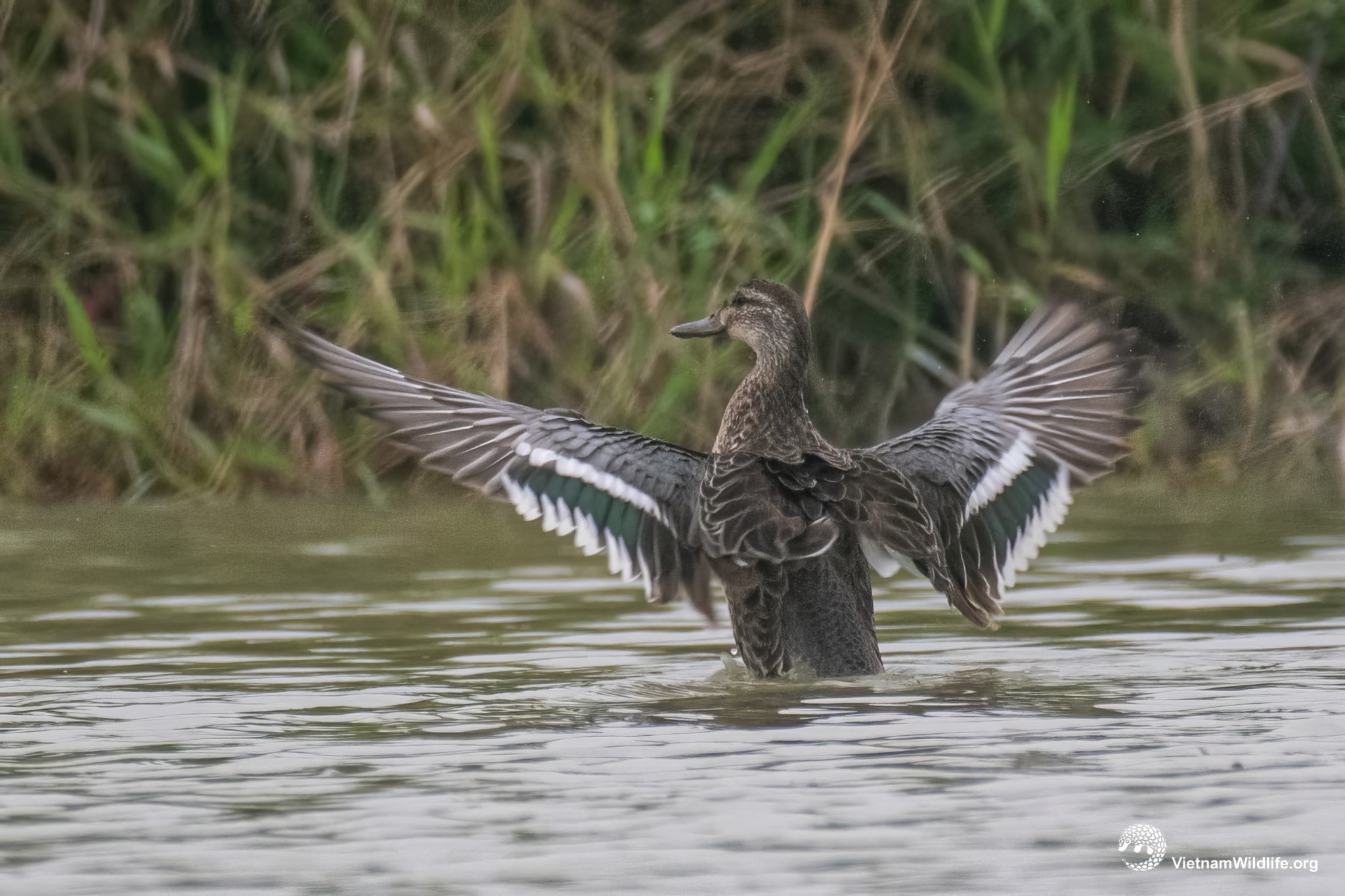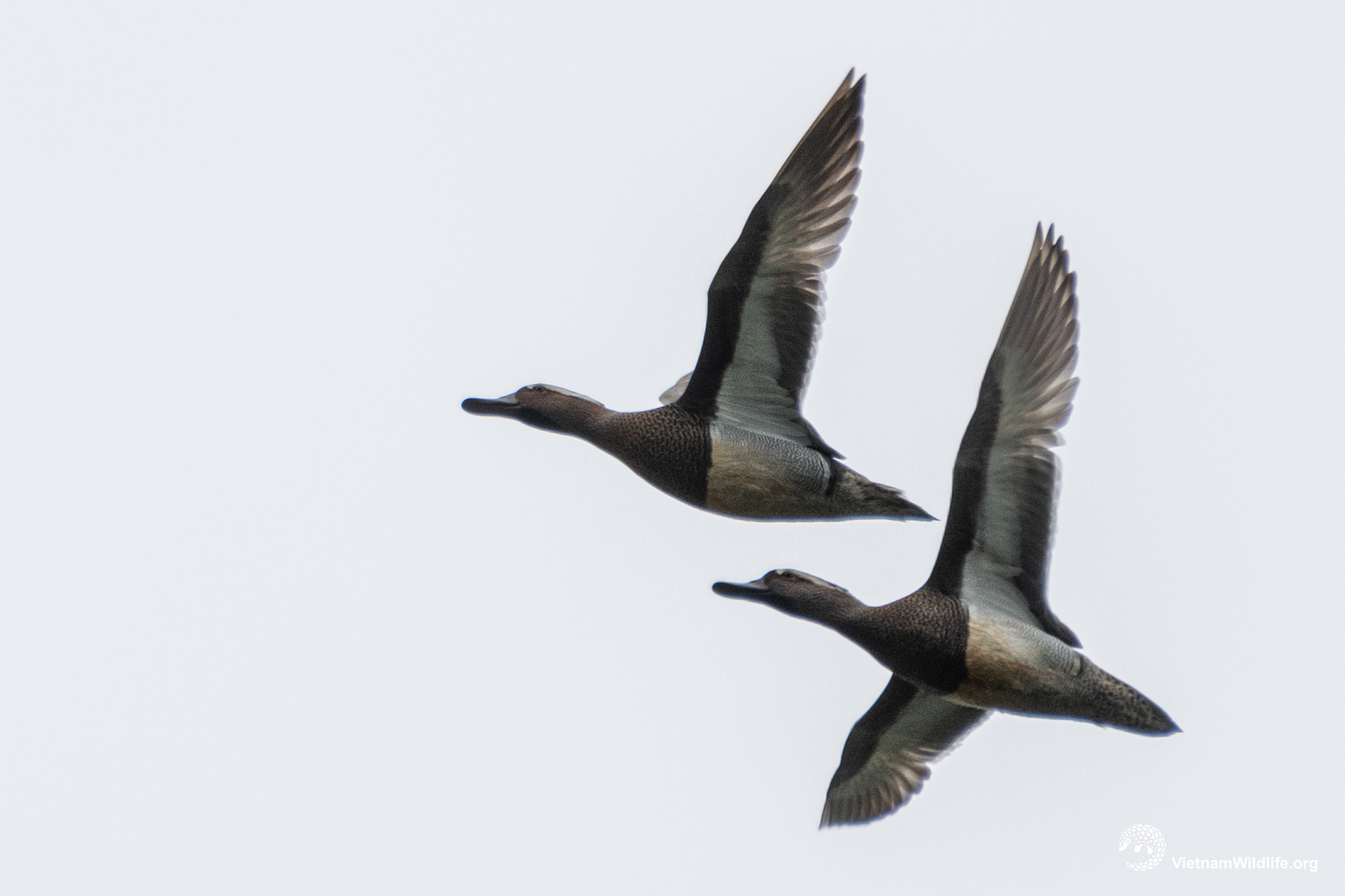 Garganey is a relatively small sized species in the duck group (about 40 cm). Female has a dark crown, narrow whitish supercilium, bold dark eyestripe, heavy dark cheek-bars in whole body. Male has a mostly dark brownish head and neck with blacker crown and pronounced long white supercilium