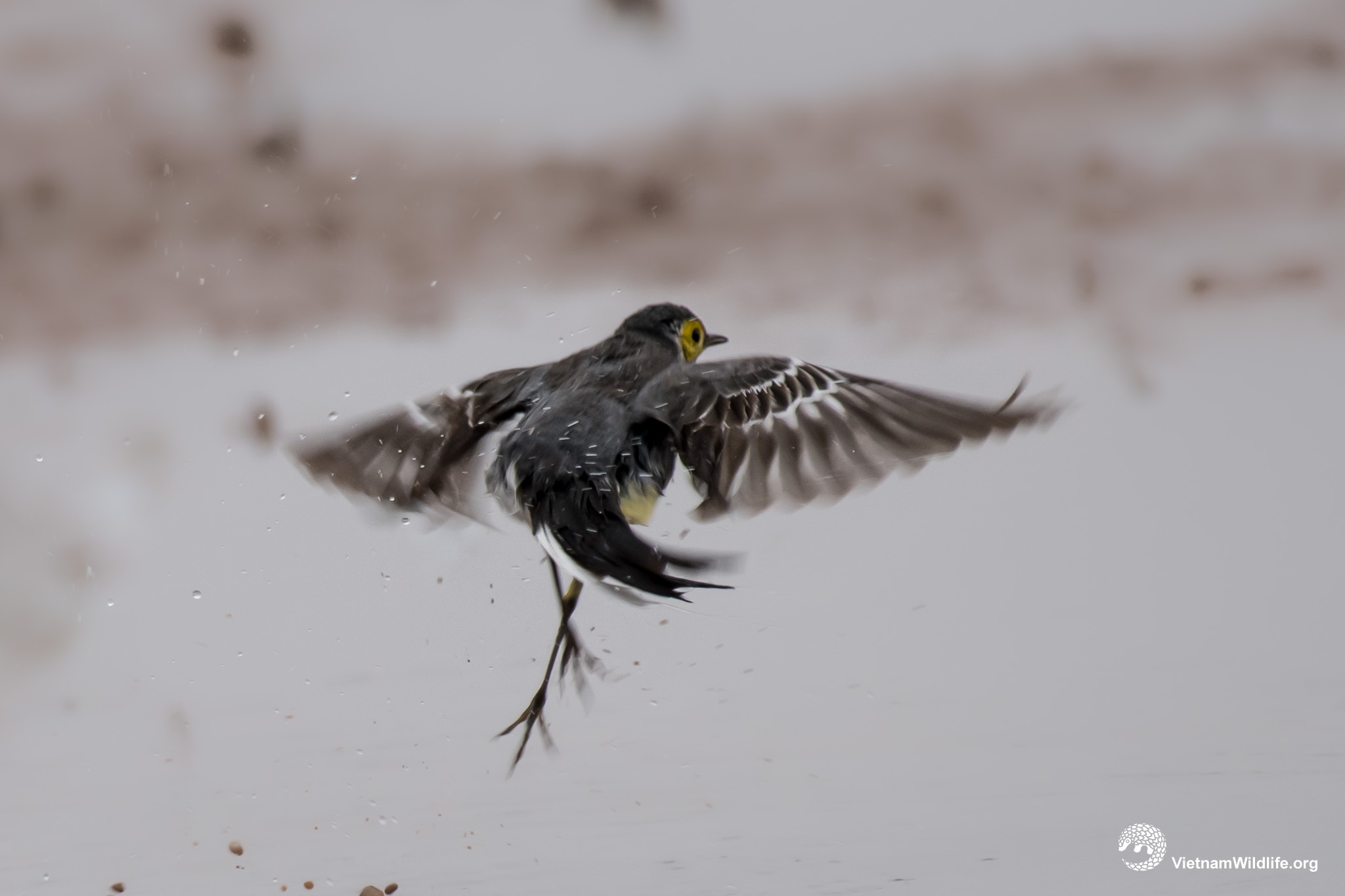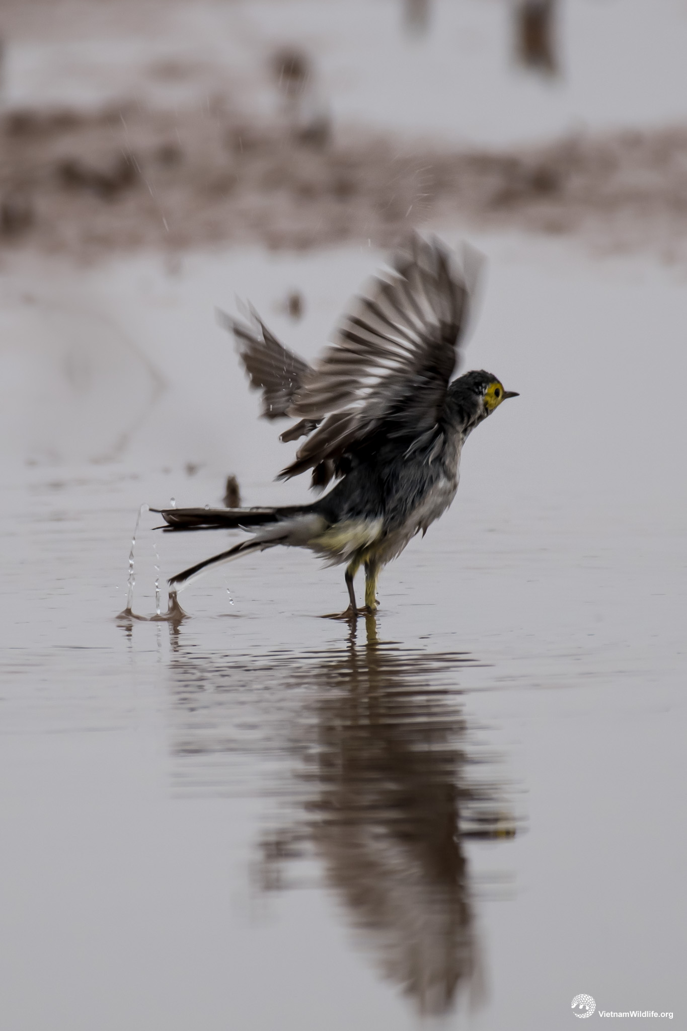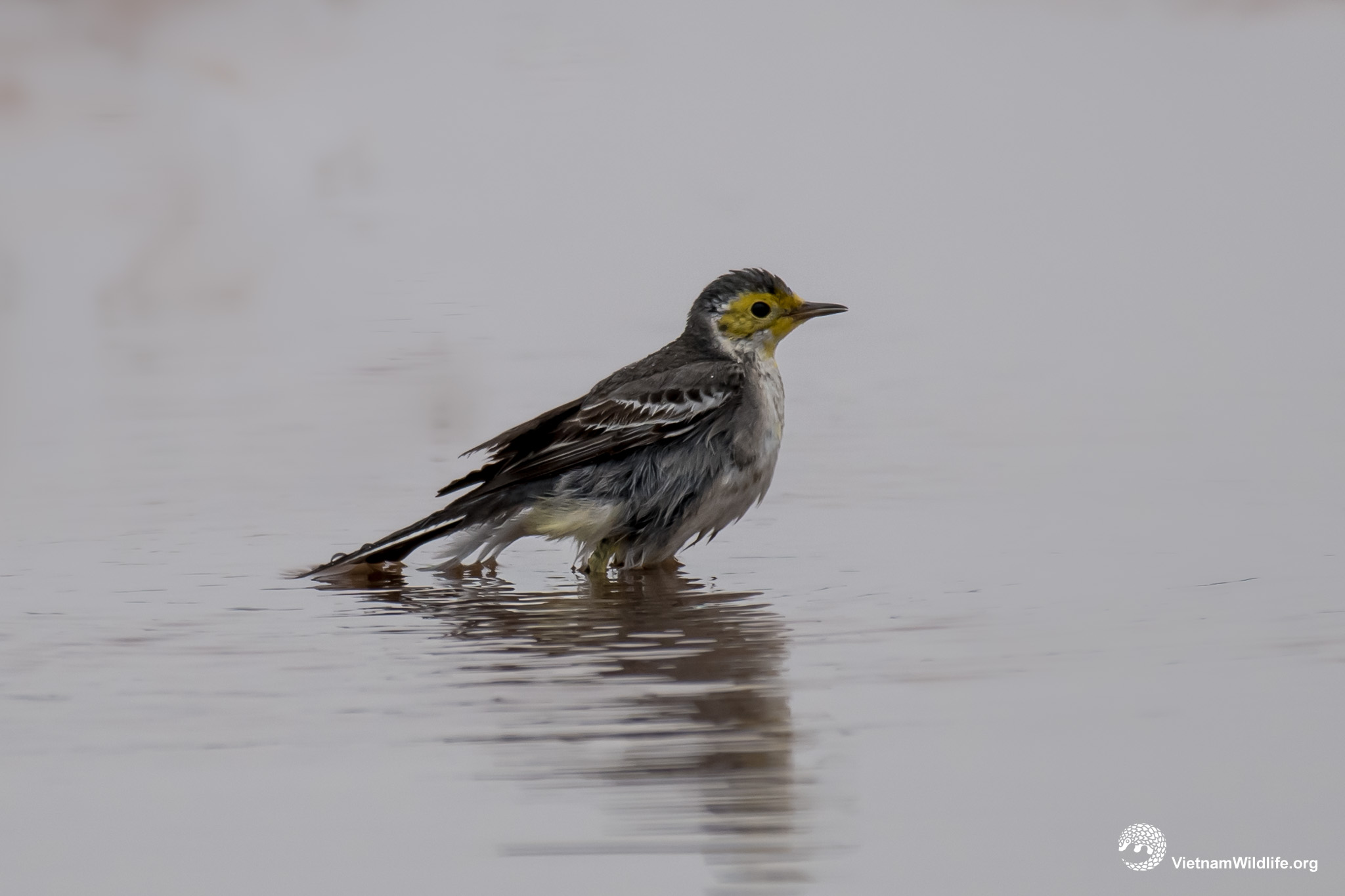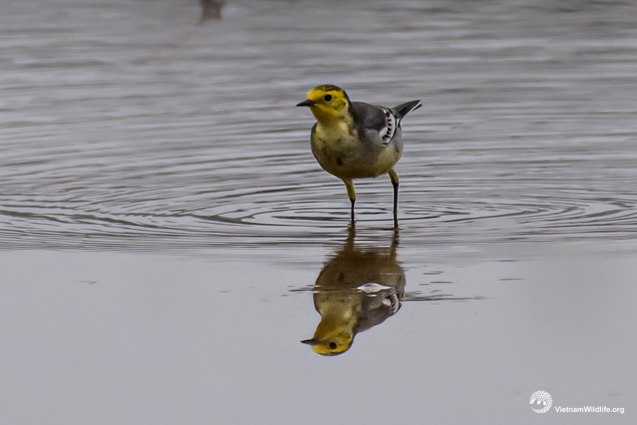 Citrine wagtail has similar size with other species in wagtail group (about 19cm). In breeding season, the male has distinctive yellow head, underparts, grey back and rump. In non-breeding season, it is similar to the female with grey underparts, black and white upperparts. The female has a prominent whitish supercilium.