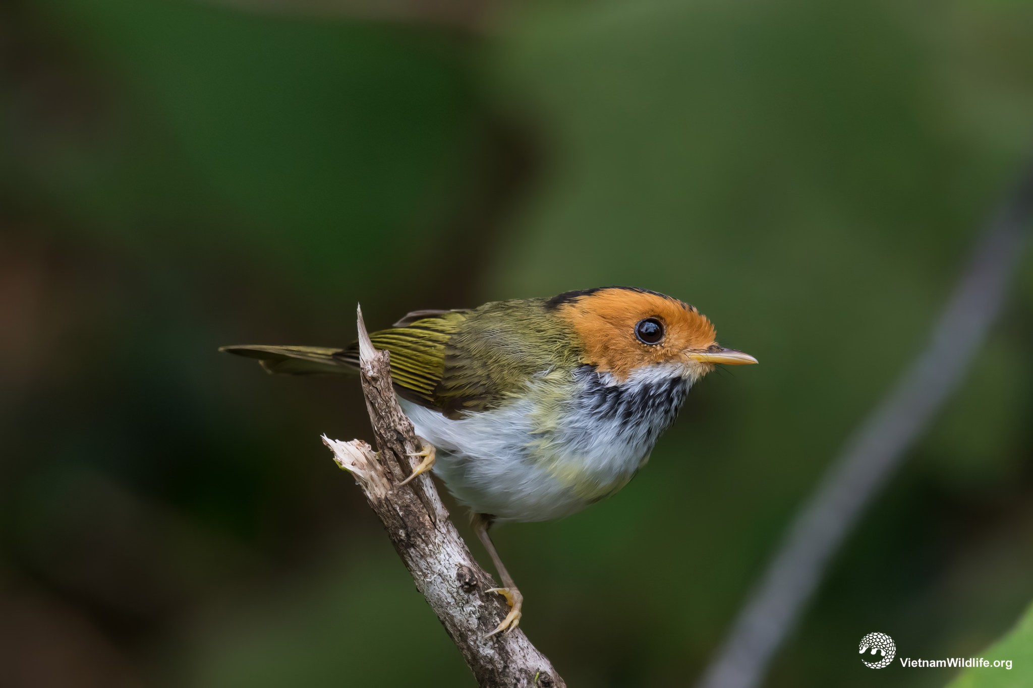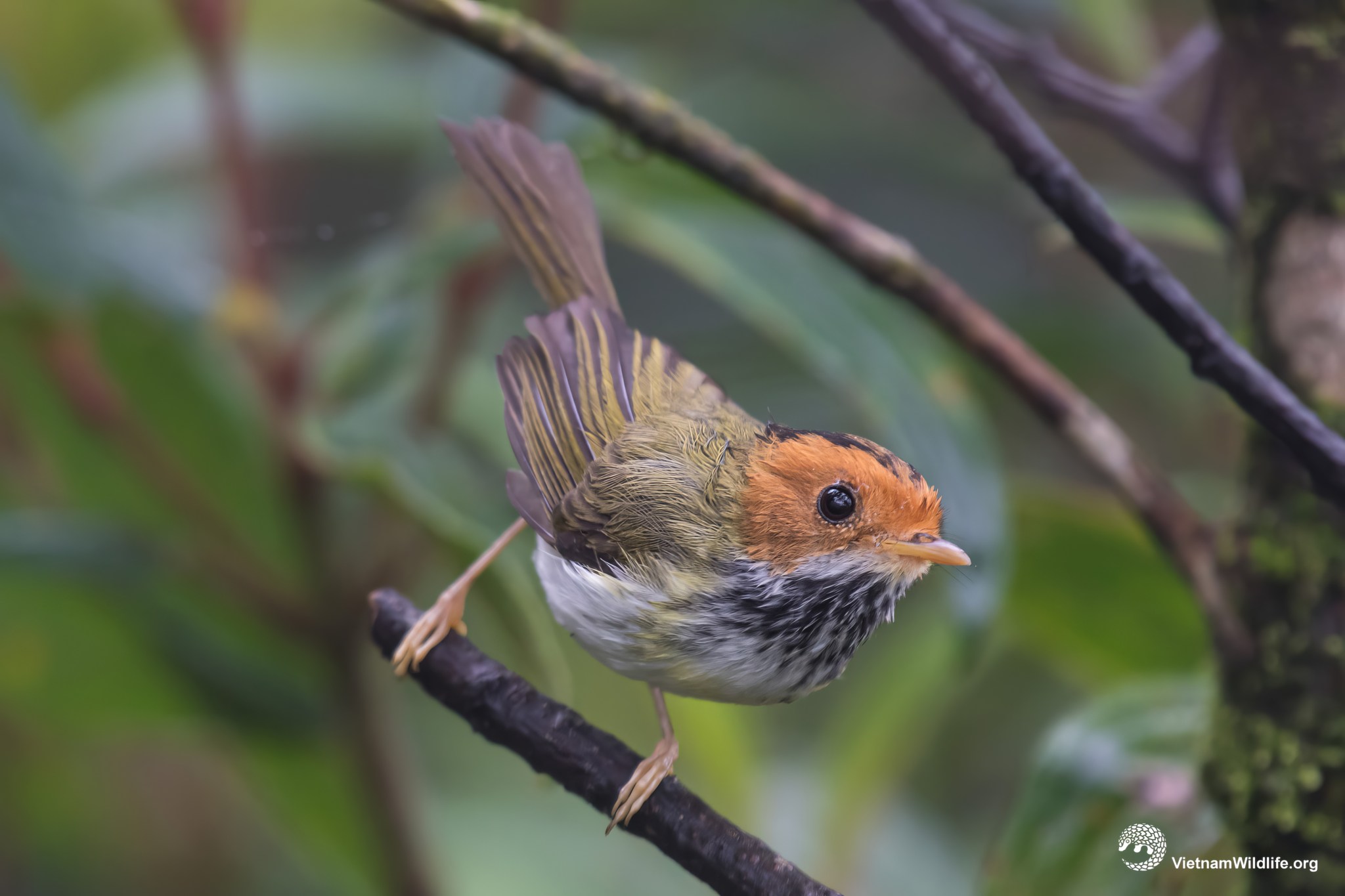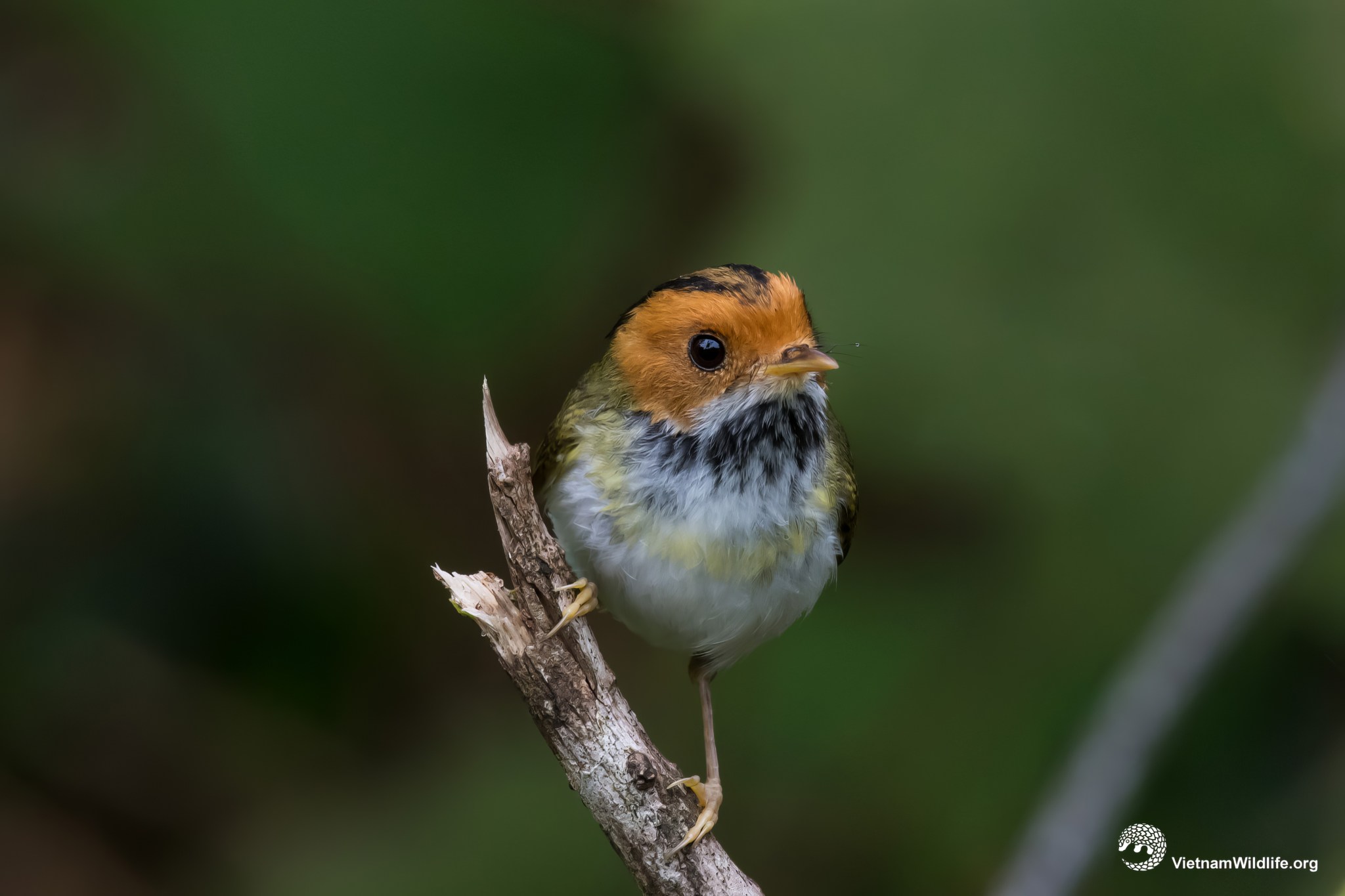 Rufous-faced warbler is a very small species in the warbler group (about 9cm). It has blackish lateral crown-stripes, rufous head-sides, black-and-white mottled throat, whitish underparts with yellow breast-band and yellowish-olive upperparts. Male and female are similar.