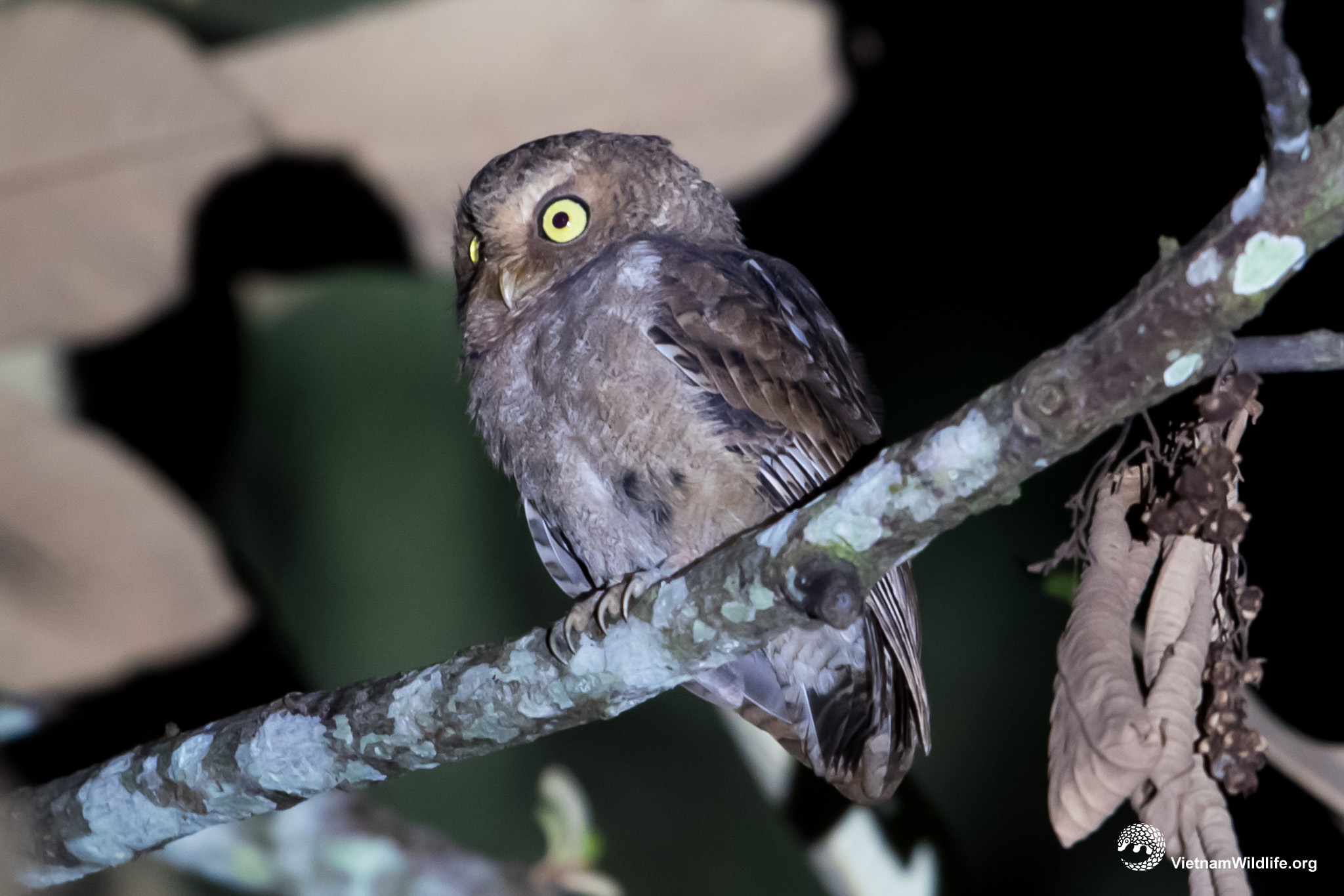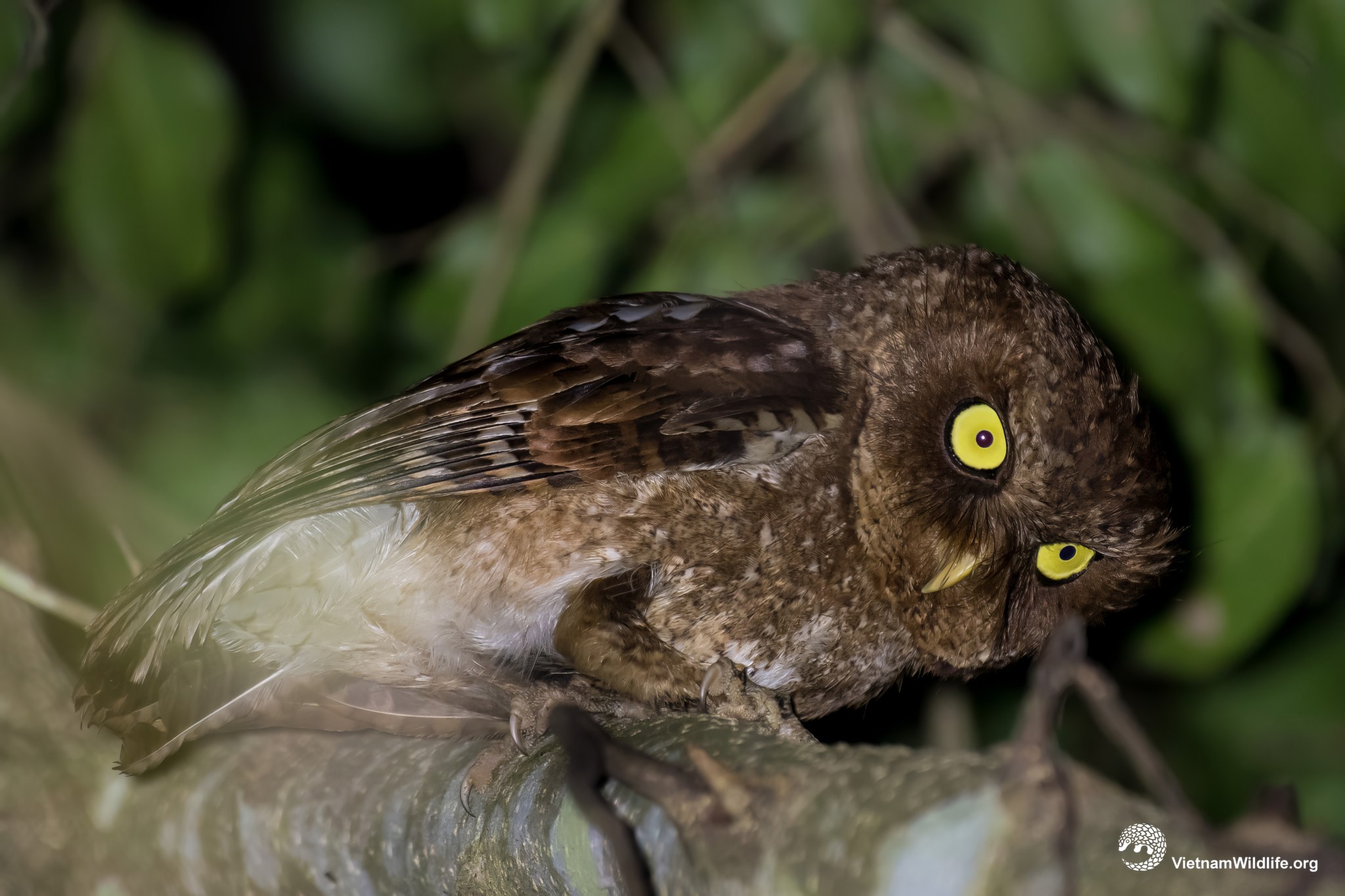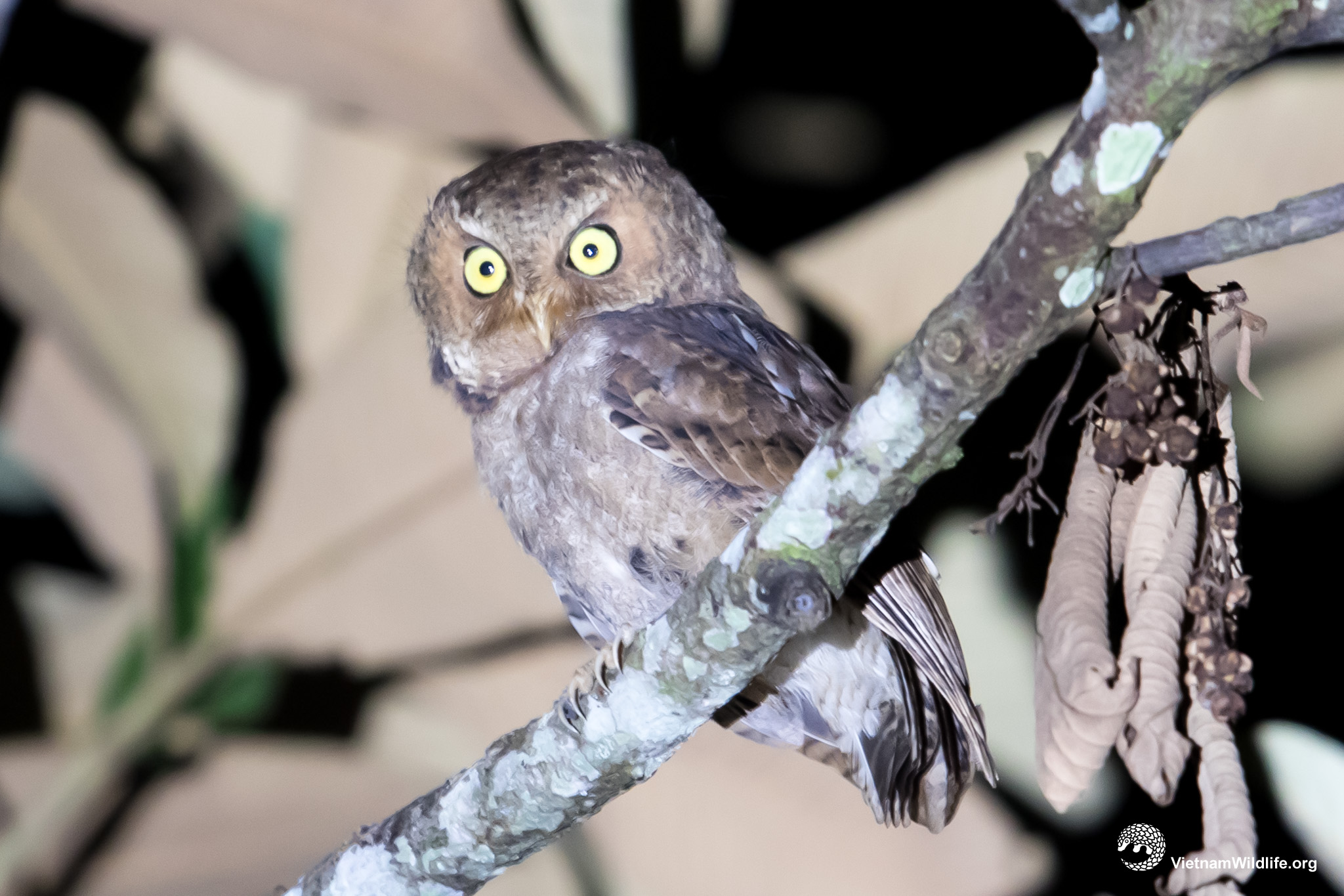 Mountain scops owl is a small species in owl group (about 20 cm). It has prominent yellow eye, rufescent upperparts, buffish to rufous underparts with white markings in scapular and wing-coverts.