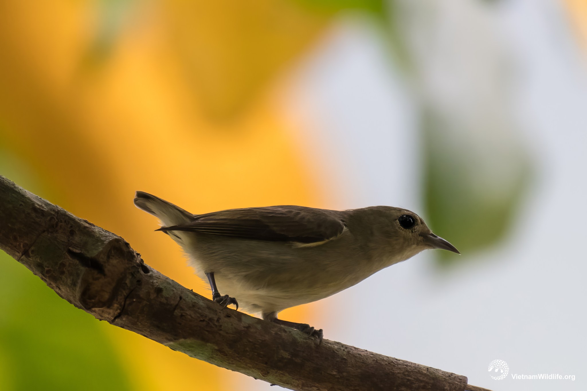 Plain flowerpecker is a very small bird (8 cm). It has a dark curved-down bill, almost greenish-olive upperparts, pale-olive underparts and short tail. Male and female are similar.