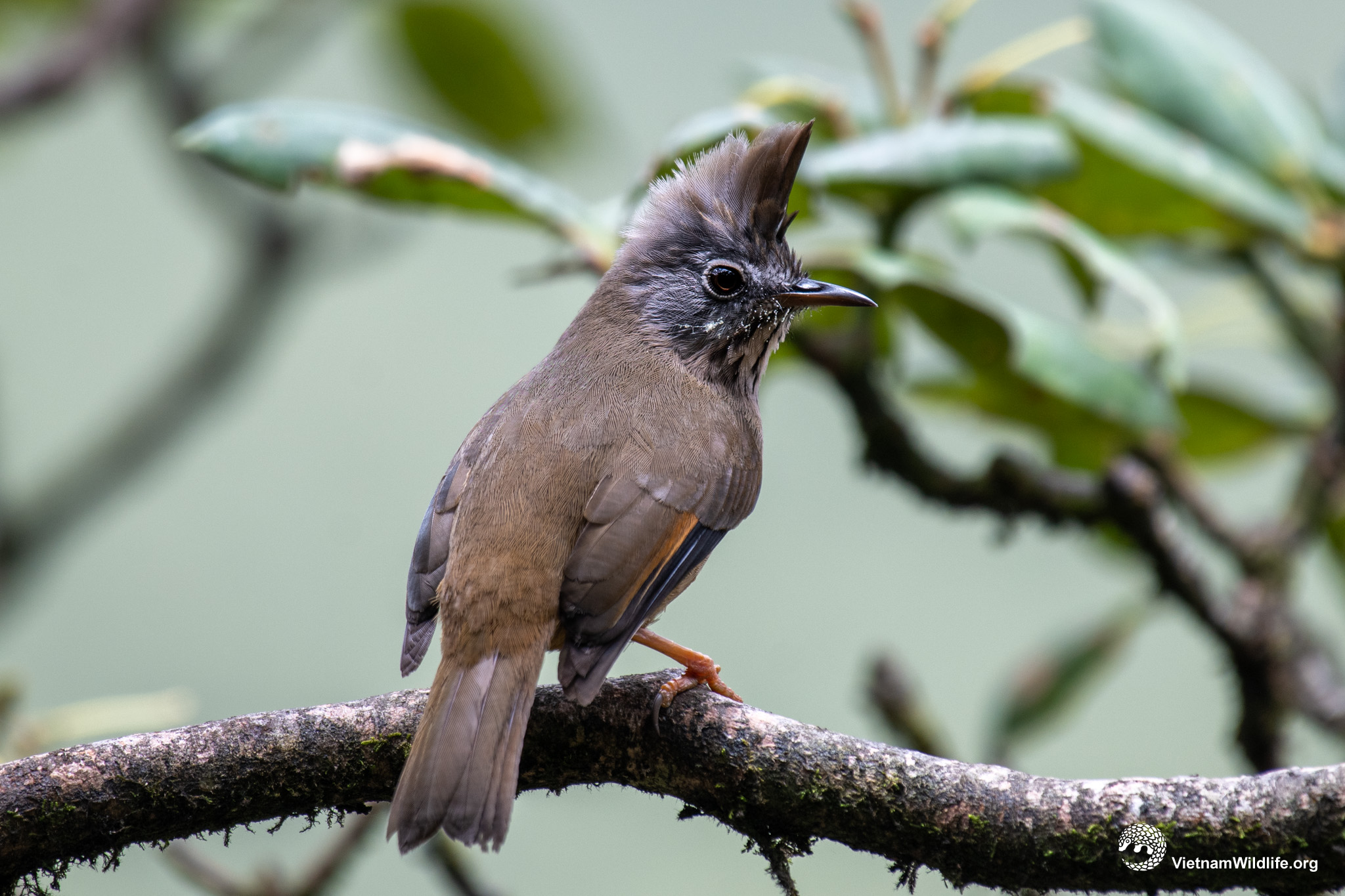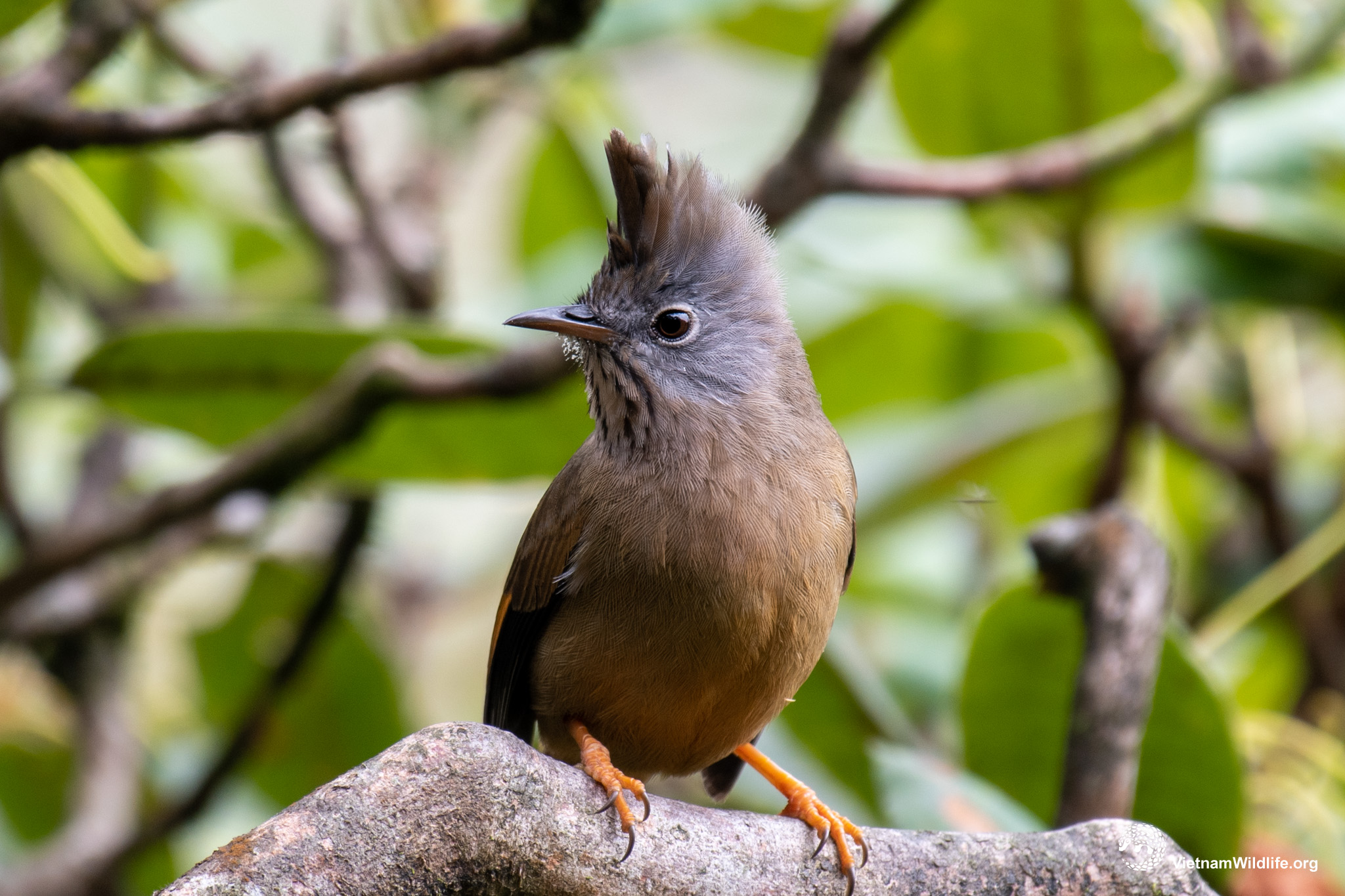 Stripe-throated yuhina is large sized species in yuhina group (about 15 cm). It has prominent dusky erect-curved crest, buffish throat with small black streaks, greyish-brown plumage with extensive orange-buff patch in their wing. Male and female are similar.