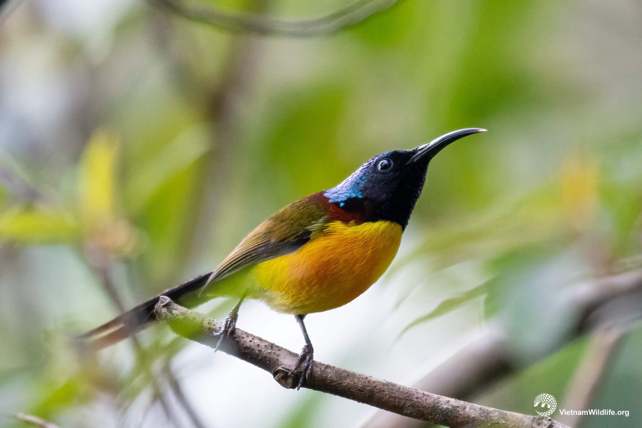 Green-tailed sunbird is one of 14 species of which we can watch in Vietnam. It grows mainly in the high elevation regions from 1400-2800 m (popular in the West Tonkin and Ngọc Linh mountain). There are minor differences between two subspecies in these regions (such as (i) no scarlet on underpart and (ii) lack chestnut band on mantle in the subspecies on Ngoc Linh mountain).