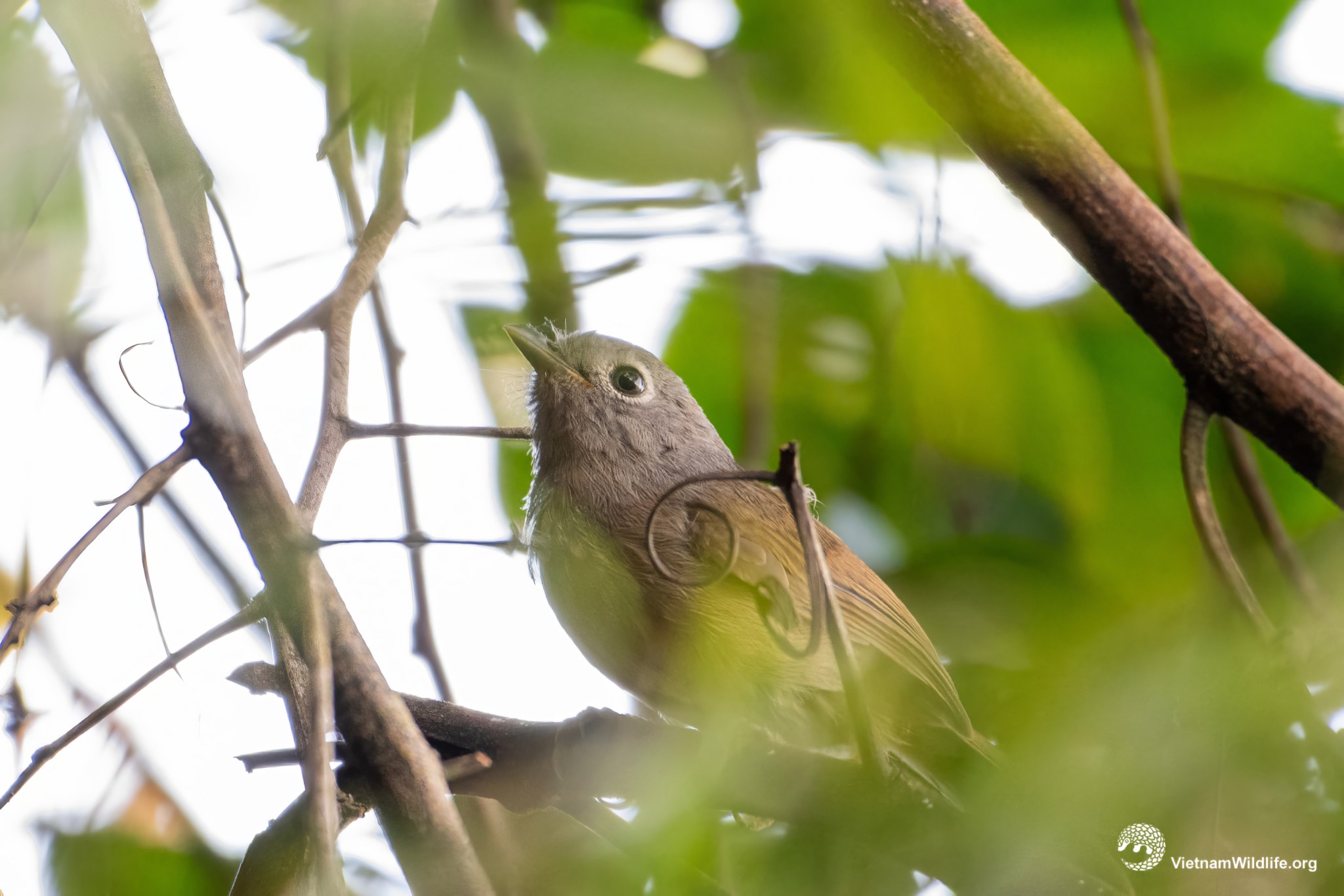 David’s fulvetta is a medium sized species in the fulvetta group (about 14 cm). It has a grey head and shoulder, prominent white eyering, warm brown upperparts and distinctly buff underparts. Male and female are similar.