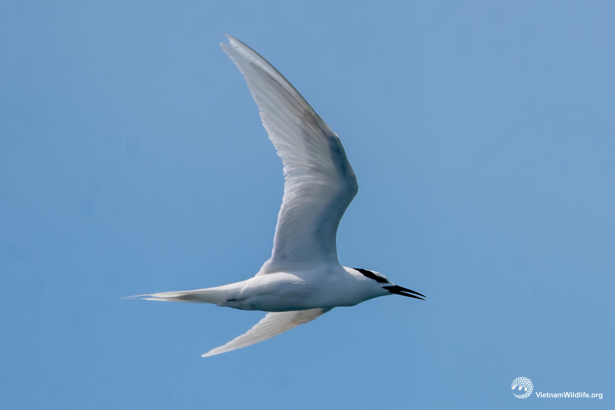 It is a medium sized species in the tern group (about 32 cm). In breeding season, it has all white plumage except the distinctly black nape, bill, legs and feet. In non-breeding season, it has additional some dark streaks on hindcrown