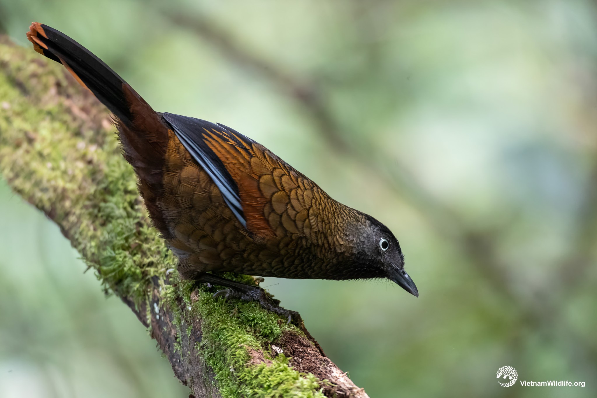 Amur falcon is a small species in the falcon group (about 30 cm). Male and female appear differently. Male has slaty-grey upperparts, paler grey underparts, rufous-chestnut vent, orange eye-rings. In flight, it has white patches underwing which contrast sharply with blackish remainder of underwing. Female has yellow eye-rings, dark-barred upperparts and upper-tail, buffy-white thighs and vent.