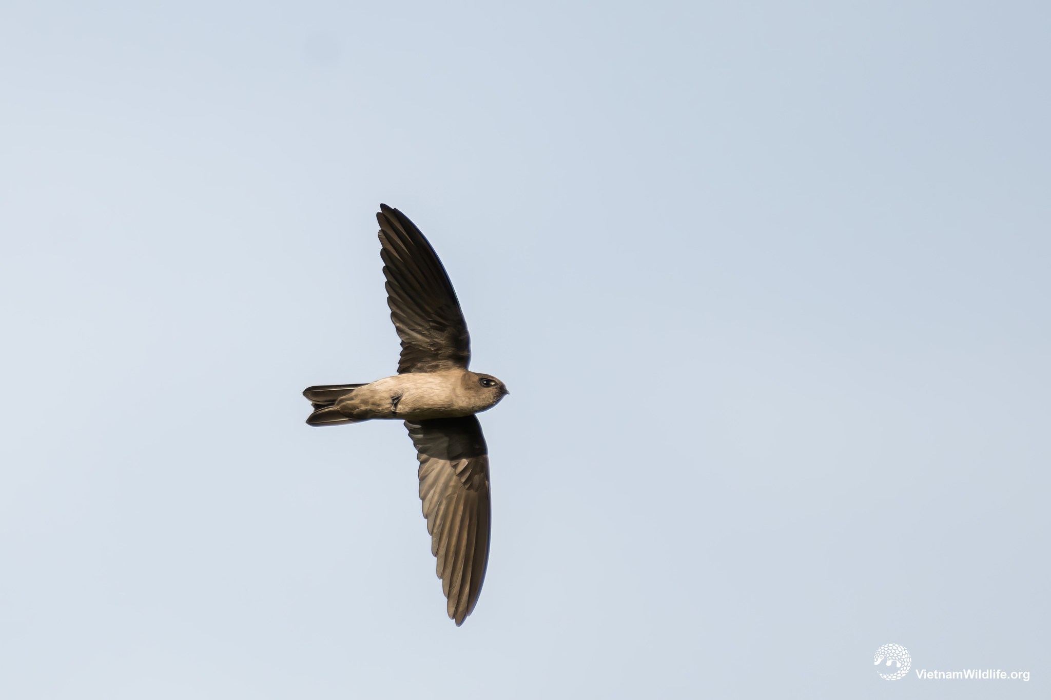 House swift is a small species in the swift group (about 15 cm). It has an averall blackish plumage with whitish throat and broad clear white rump-band. Male and female are similar.
