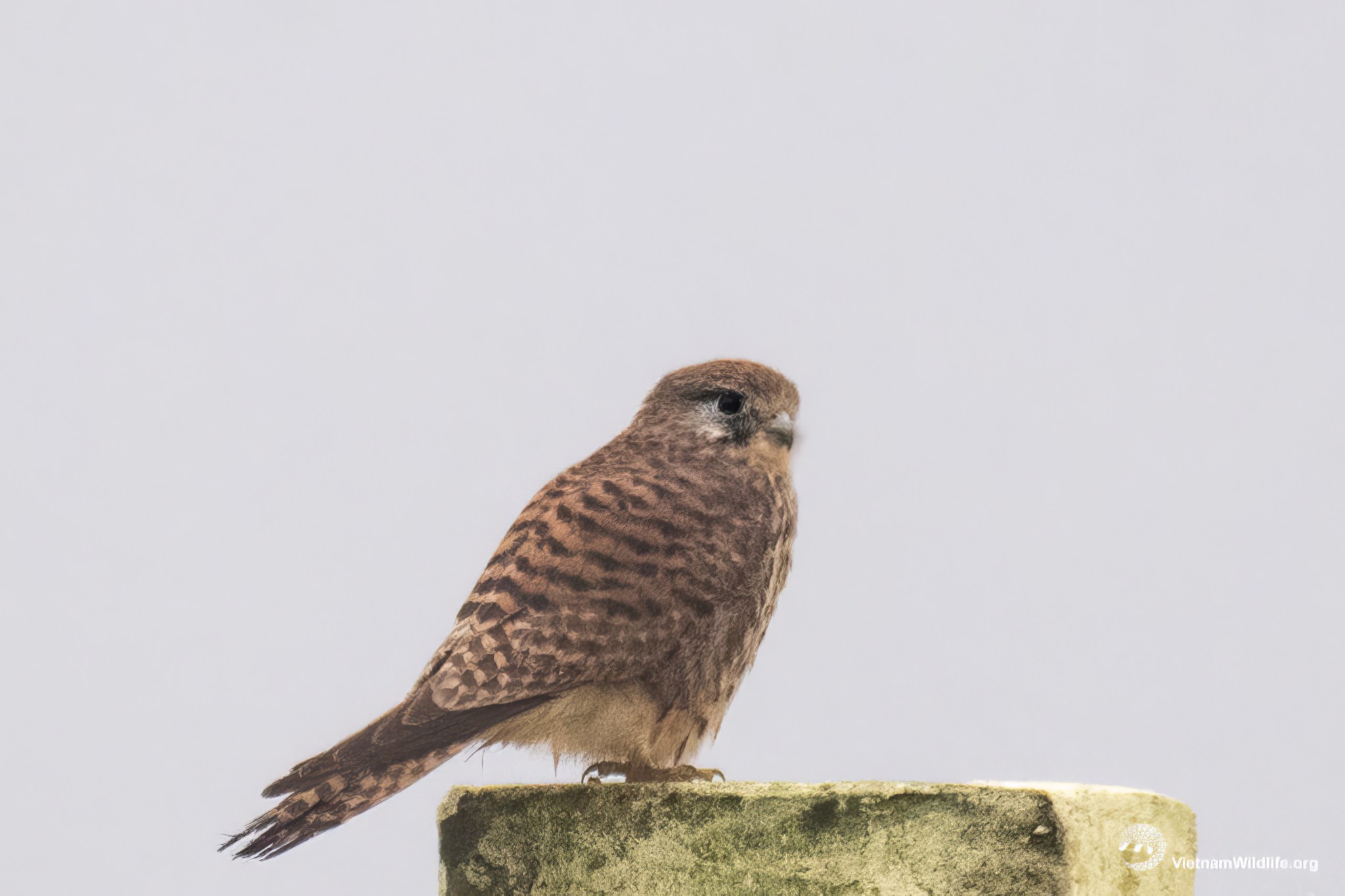 Amur falcon is a small species in the falcon group (about 30 cm). Male and female appear differently. Male has slaty-grey upperparts, paler grey underparts, rufous-chestnut vent, orange eye-rings. In flight, it has white patches underwing which contrast sharply with blackish remainder of underwing. Female has yellow eye-rings, dark-barred upperparts and upper-tail, buffy-white thighs and vent.