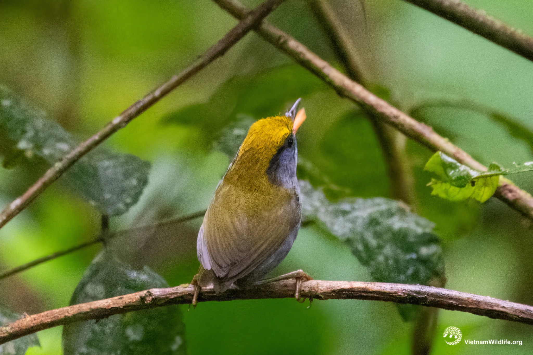 Chestnut-headed tesia is very small species (about 9 cm). It has bright chestnut crown, contrasting bright yellow throat and upper breast, dark olive upperparts and very short tail. The juvenile miss chestnut crown and has more golden-buffish centre of throat and belly.