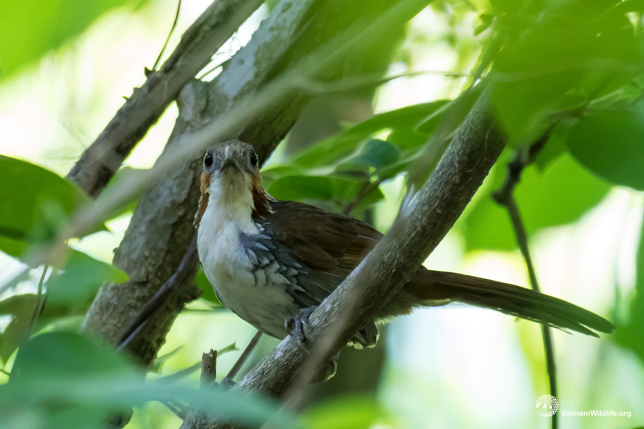 Pale throated wren babbler is very small bird in wren babbler group (about 11 cm). It has mostly greyish-brown plumage with heavy dark scales. Male has distinctive white throat while female has buffy-rufous throat and darker and browner base colour of breast and flanks.