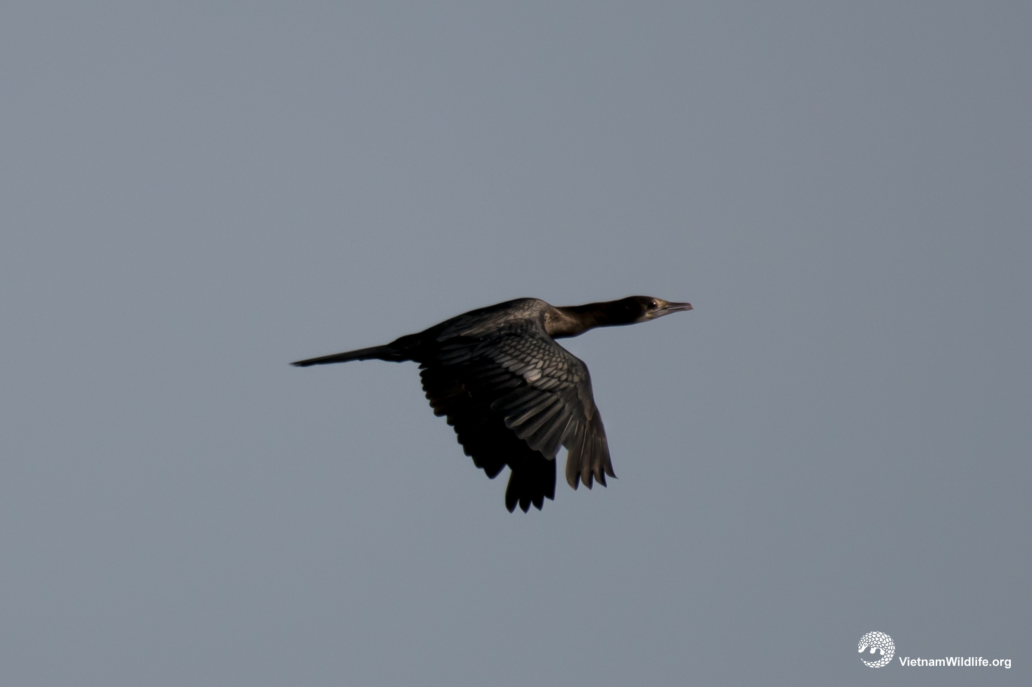 Great cormorant is the biggest sized species in the cormorant group (about 90 cm). It has glossy black plumage with a prominent white patch on lower sides of it’s head and yellow facial skin. In flight, it appears relatively thick-necked, large-winged and short-tailed.