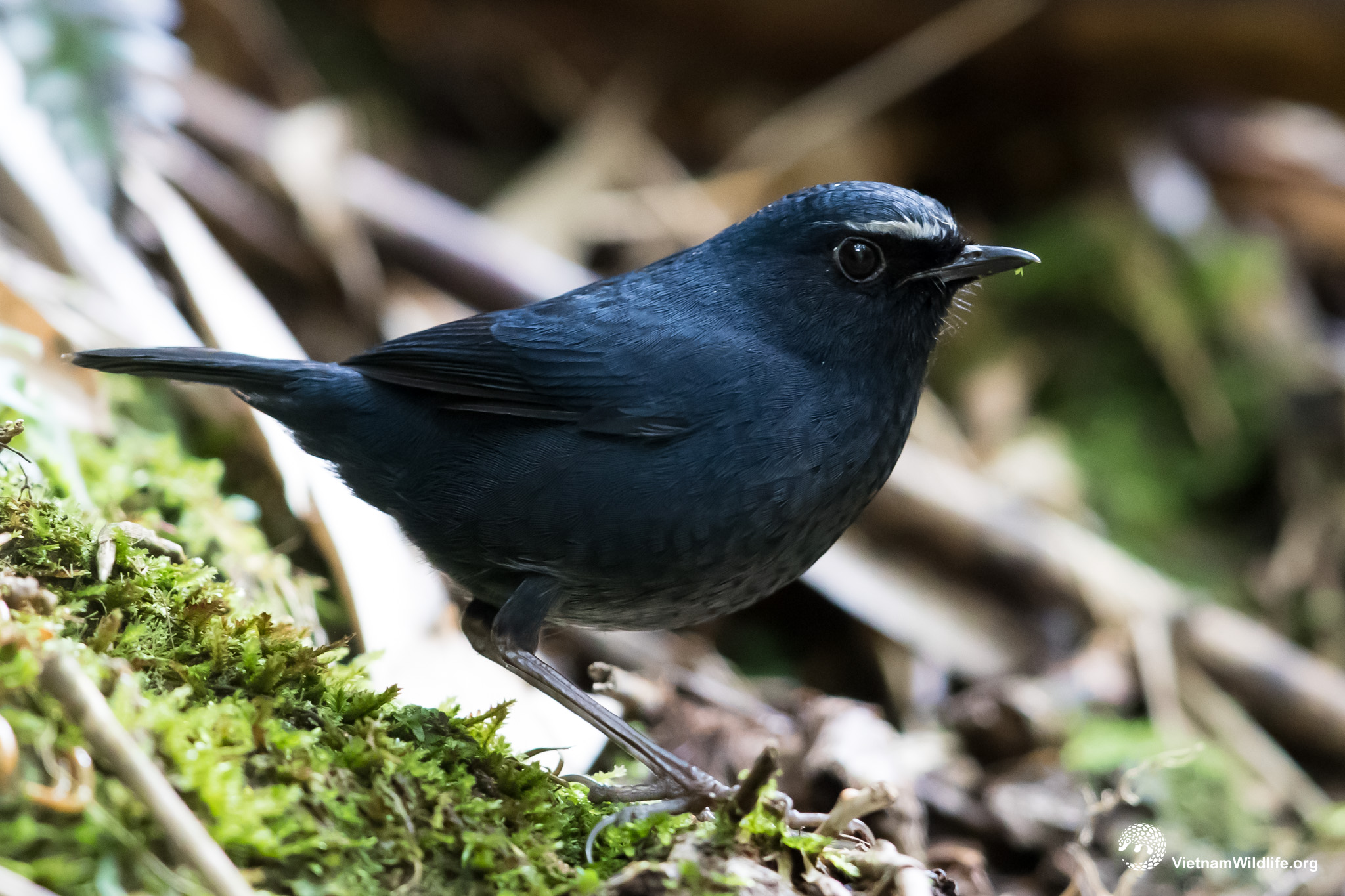 Himalayan shortwing is a large sized species in shortwing group (about 14 cm). The male had a dark blue plumage with distinctive white supercilium, blackish mottled underpart. Female is mostly brown.