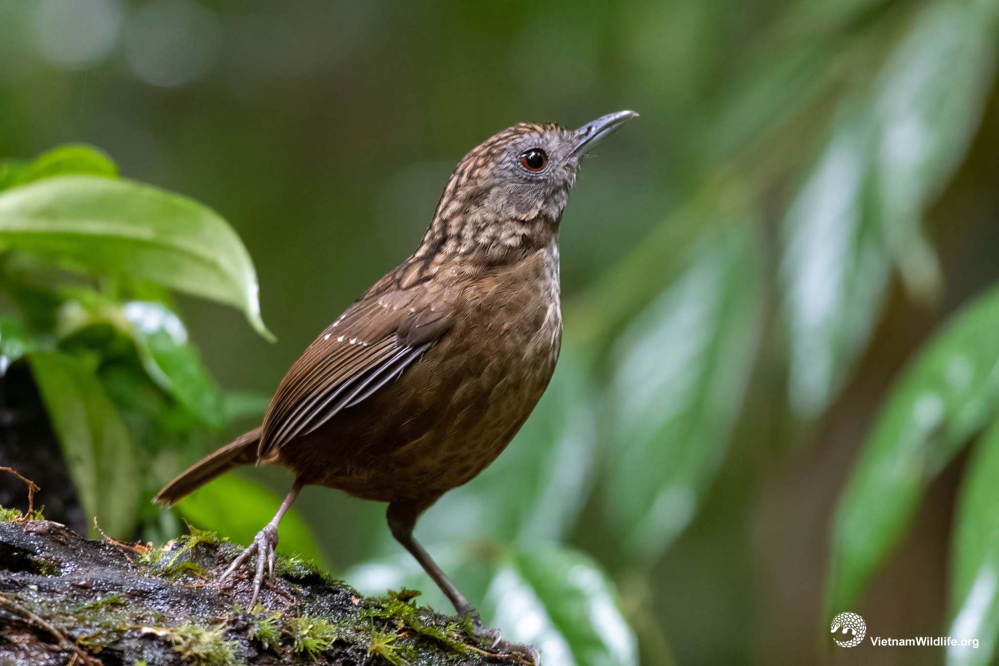 Streaked wren babbler is fairly small sized species in babbler group (about 15 cm). It has greyish head-side, blackish brown scales in from crown to back and dark brown underparts. It has relatively short tail.